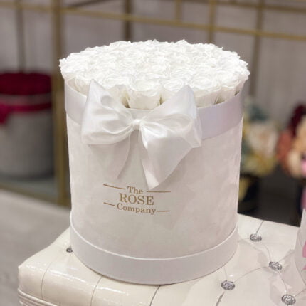 Forever Roses Midi Velvet Pink Box of White Roses
